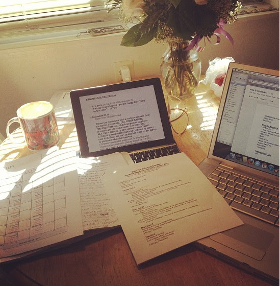 Picture 4There are some less glamorous aspects to being a Director.  We all want to be in the rehearsal room, inspiring actors to take brilliant leaps, and creating art.  Frankly, though, 75% of my work happens outside of the theatre.  I have to create the time and space to be a manager – creating a production schedule that accommodates the schedules of my actors, co-directors, and designers.  I have to be in constant communication with all of those people as our project develops in order to implement ideas and changes.  There are dozens of emails to send, calendars to manage, meetings to attend, music to edit, scripts to cut, and blocking prep to write out.  None of the artistic genius can even begin to occur if the administrative foundation is not in place.