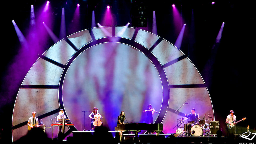 night. The performance was the last stop on her “Little Black Dress” tour. Sara crisscrossed the country this summer, mostly playing songs from her newest album, “The Blessed Unrest.” It’s a new album, with a new, more electronic sound, she’s backed by a new band, and is sporting a new, glamorous style. In under 8 years, Bareilles has gone from singing in a UCLA a cappella group and playing small venues in LA, to being a celebrity judge on The Sing-Off, living in New York, writing music for the Broadway adaptation of the film “Waitress,” and performing with Carole King at the Grammy Awards. Her first major studio album, “Little Voice,” debuted on the US Billboard 200 at number 45, selling about 16,000 copies in its first week. Her latest album, “The Blessed Unrest,” debuted at number 2 on the Billboard200, only behind Jay-Z‘s Magna Carta… Holy Grail. It sold 68,000 copies in its first week of release.